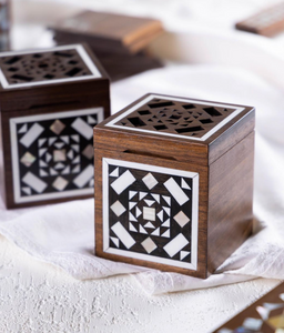 This walnut wood inlaid with mother of pearl is inspired by this beautiful architecture technique.